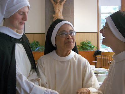 Sr. Mary Martha greets Sr. Maria Agnes and Sr. Denise Marie