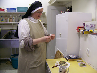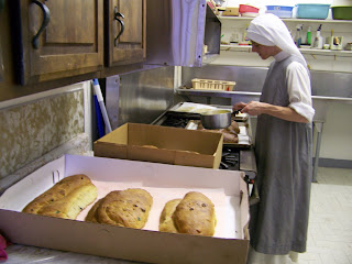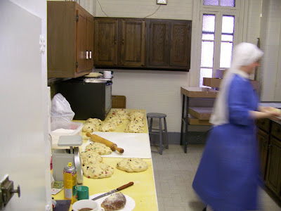 As some of our faithful readers know, every Christmas we bake a large amount of stollen for the priests, doctors, service people, benefactors, etc. who serve our monastery. This year Sr. Mary Catharine, aided by Sr. Mariana baked 60 loaves of very tasty bread!