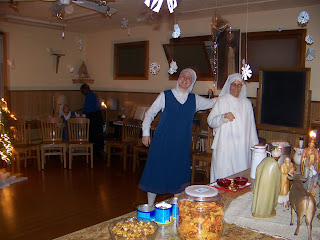 Sr. Mary Martin crowns Sr. Maria while she accompanies us as we sing "We Three Kings"!