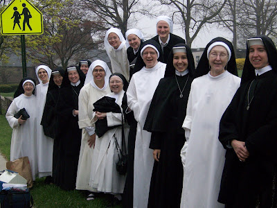 We wanted Benedict XV to ourselves, of course, but we had to share him with 58,000 of our brothers and sisters in Christ. We didn’t mind a bit! In fact, one of the highlights of being at this Papal Mass was experiencing the unity of the mystical body of Christ. It was a moment when we could unabashedly express our joy and pride at being Catholic. Priest and seminarians were everywhere in their cassocks. As we crept along, moving through the crowds we saw and met religious sisters of many religious congregations. A few people greeted us, recognizing us as the “blog” nuns. Others questioned if we were Nashville or Ann Arbor Dominicans and we were thrilled to be able to share with them that we were the cloistered branch of the Order.