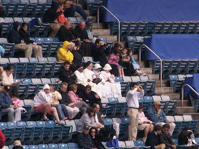 We got to Yankee Stadium in about 45 minutes after a delay when the response to Sr. Mary Catharine’s, “everyone got their tickets?” was met with, “Oh, NO!” from Sr. Joseph Maria. The rest of our community was at Mass so no one was answering the doorbells but finally Sister got back inside the monastery and retrieved her precious ticket.