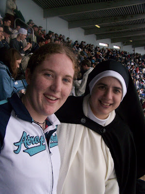 We went sailed right through security. As good nuns we took the long list of prohibited articles literally and found that we really could have slipped in our sandwiches instead of having to pay the exorbitant stadium prices.