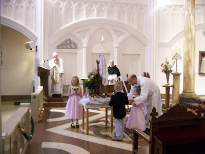 Every year Rich Sophie does the honors of helping the one to crown our Lady climb the ladder and keep the rest of the attendants under control! This is probably more stressful for the parents than for the children!
