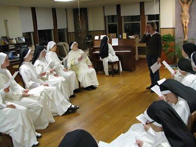 Tonight began the first of practices for our little Christmas "concert" that we give between Matins and Midnight Mass. If you are thinking that we are starting late, well, you're right! Somehow we never manage to start earlier despite our talking about doing so every year. It's nothing short of a miracle that we are able to sing the pieces we've set out to perform!