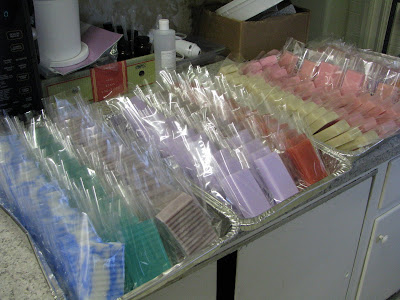 Just a few bars of soap bagged and ready to be sealed, shrink wrapped and labeled.