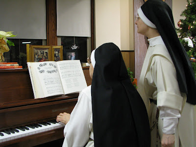 Sr. Maria and Sr. Denise Marie provide a little Christmas music; no small feat as we were all talking at once!