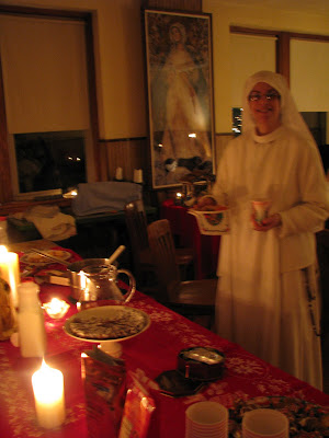 One of the Christmas traditions in our monastery is Open House in the novitiate. Usually on Epiphany Sunday the novices host evening recreation for the professed sisters who aren't allowed up in the novitiate unless for classes or by invitation of the novice mistress.