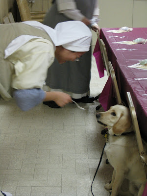 Later in the day, the novitiate sisters decorated the lecture hall for the reception following the Mass. Fred, of course, wanted to help! Meanwhile, Sr. Maureen and Sr. Maria Teresa headed out to the airport to pick up Fr. Joseph Alobadi, OP, who will be the main celebrant.