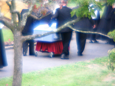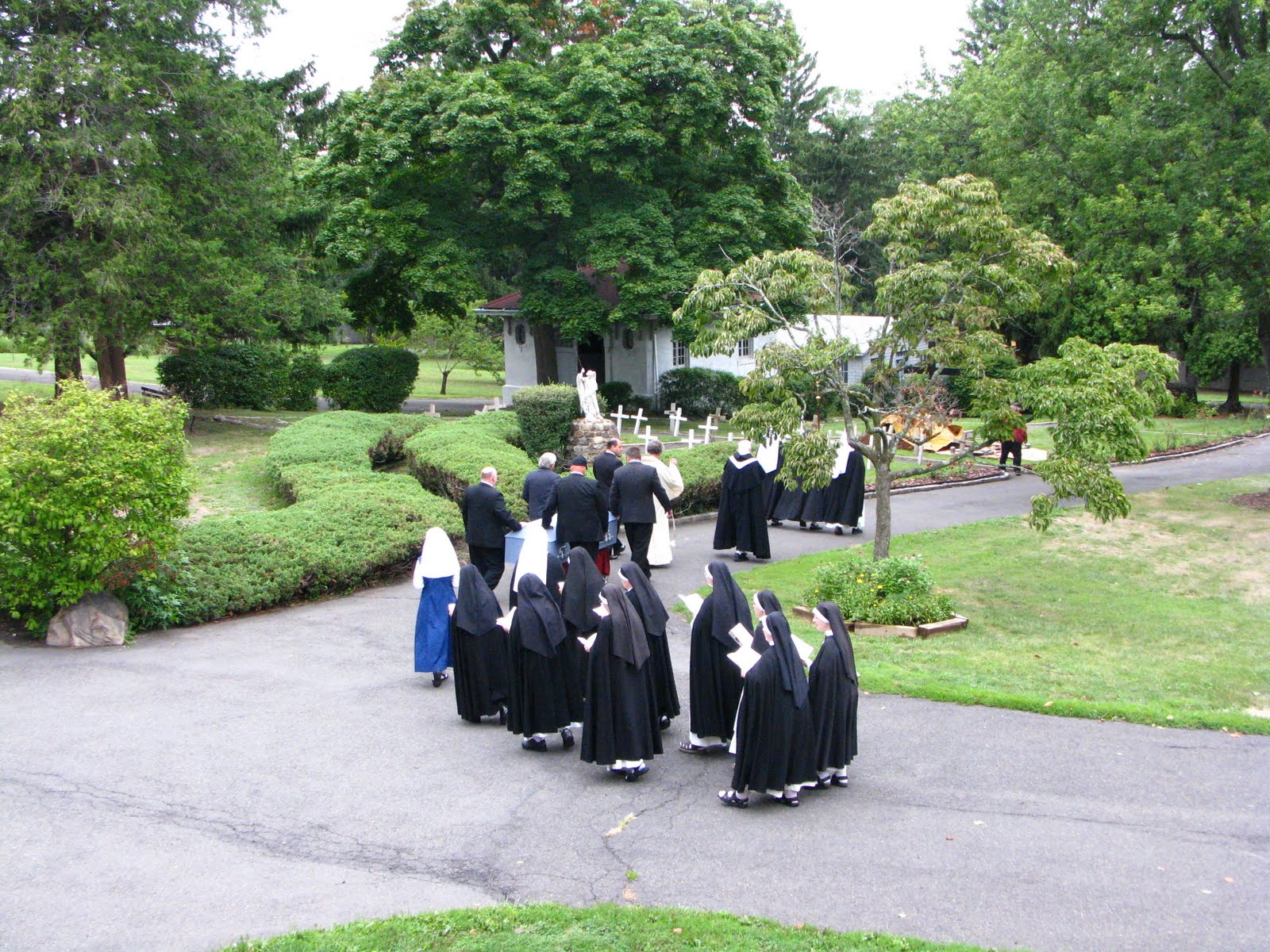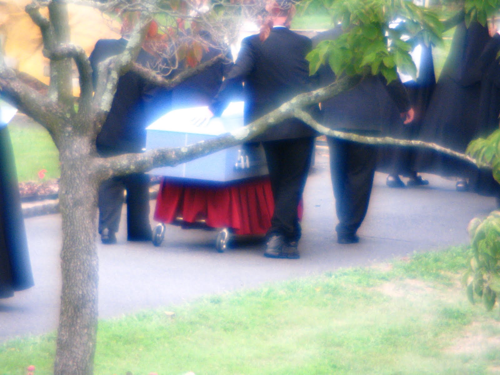 This morning we laid our Sr. Mary Anthony to rest in the monastery cemetery after the Funeral Mass celebrated by Fr. Kieran Fergus, OP, our chaplain, and Fr. Frank Maoine, one of our confessors. It was a cloudy day with rain threatening but the angels held it off until after we processed to the house.