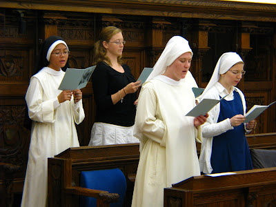 | The Sisters and pilgrims sing a verse of the "Lourdes hymn" after each decade. |