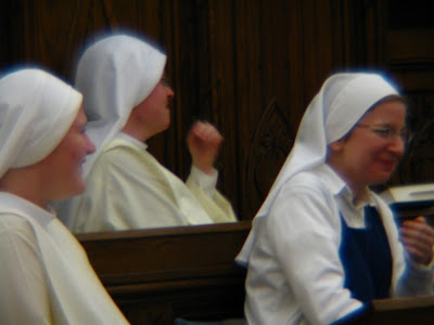 | View from the Nuns' Choir of the Procession. This banner was blessed by Pius XII during the 1950 Marian Year. |