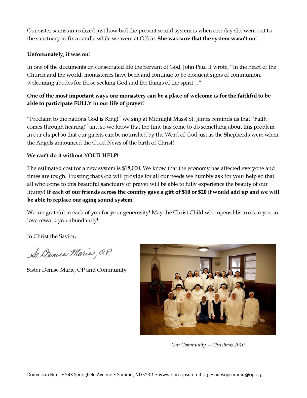 ANNOUNCE HIS SALVATION DAY AFTER DAY!: HELP THE MONASTERY ACQUIRE A NEW SOUND SYSTEM!