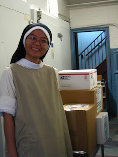 There is no such thing as the "weekend" in the monastery and Saturdays are the busiest days of the week. It's the day when dirty clothes are brought to the laundry. Cleaning is usually done on this day and the halls are sometimes obstacle courses because of mops, piles of dirty towels from the bathrooms and Sisters simply trying to CLEAN! All this in preparation for the Lord's Day which begins with First Vespers Saturday night. From then on we go into "Sunday mode".