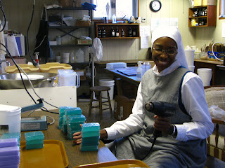 One common complaint to cloistered nuns is, "You don't help anyone in service, you just pray!" Putting aside that prayer is a very important and necessary way to help others our work in the monastery is one way we help others. First, we serve and help each other! A monastery is not a group of women united by blood ties. We are not related to each other. In fact, at one time we were total strangers! However, it is Christ who unites us and makes us one in Him. So, our service to each other out of love is an important witness to each other and to others.