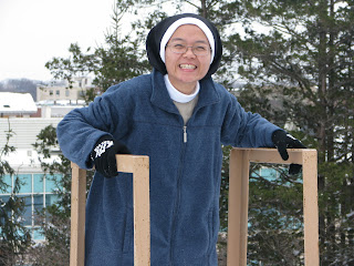 Finally, after several more trips up to the roof the bell is tied correctly and Sr. Joseph Maria is often seen running to the bell closet at 1:30 to remind us all that recreation is over and silence time is beginning.