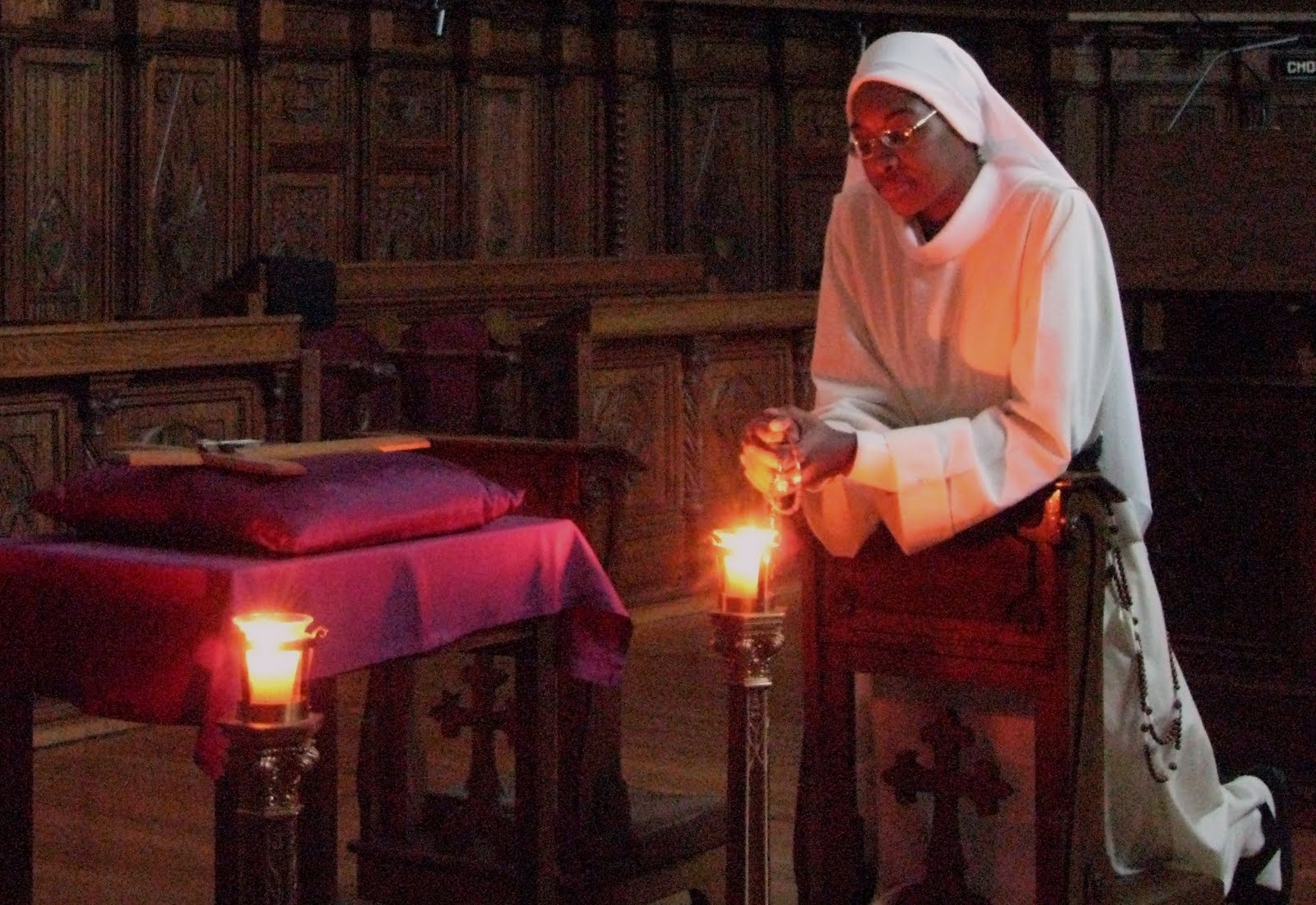 | The Sisters make their way to the Cross, on which is attached a large relic of the True Cross. Each sister makes a prostration (the venia), kisses the Cross and returns to her place in choir. |