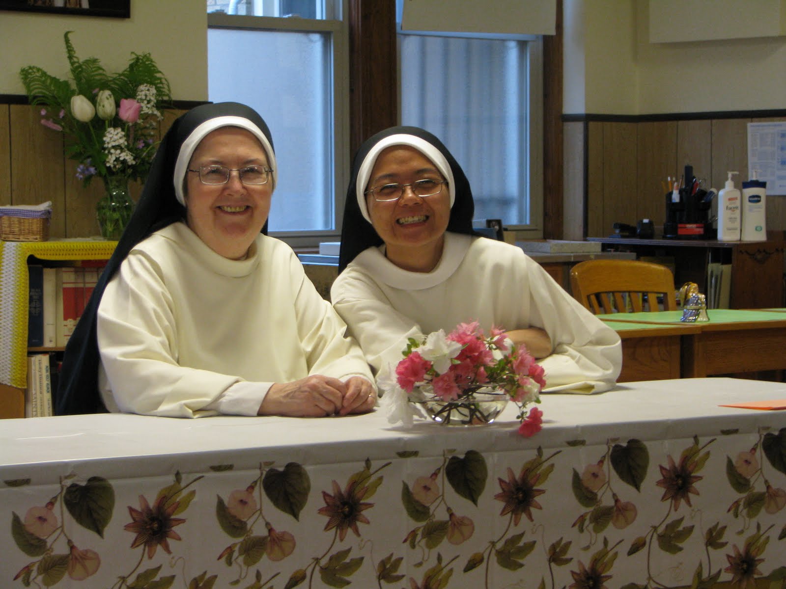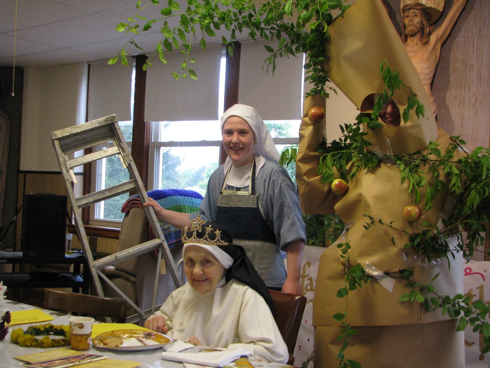 | Sr. Mary John and Sr. Joseph Maria await the festivities! |