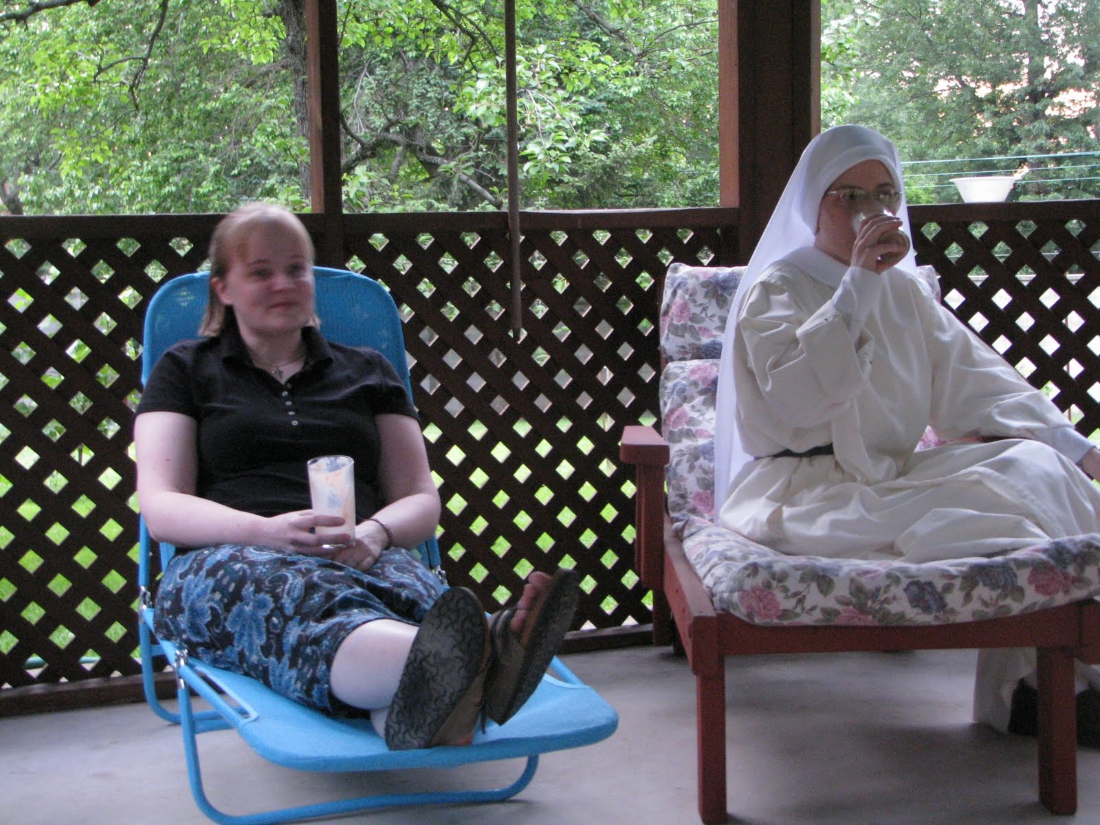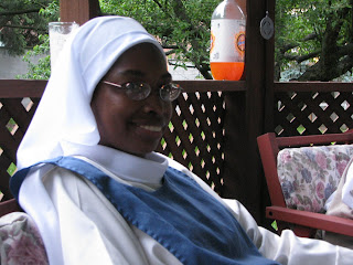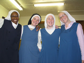 Maggie's visit over the Memorial Day weekend was an opportunity to try on high fashion postulant jumpers! Either it was too much heat or too much sugar or some of both but then everyone got into the act and found their old jumper and felt impelled to put it on again!