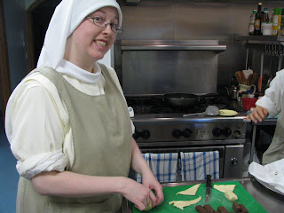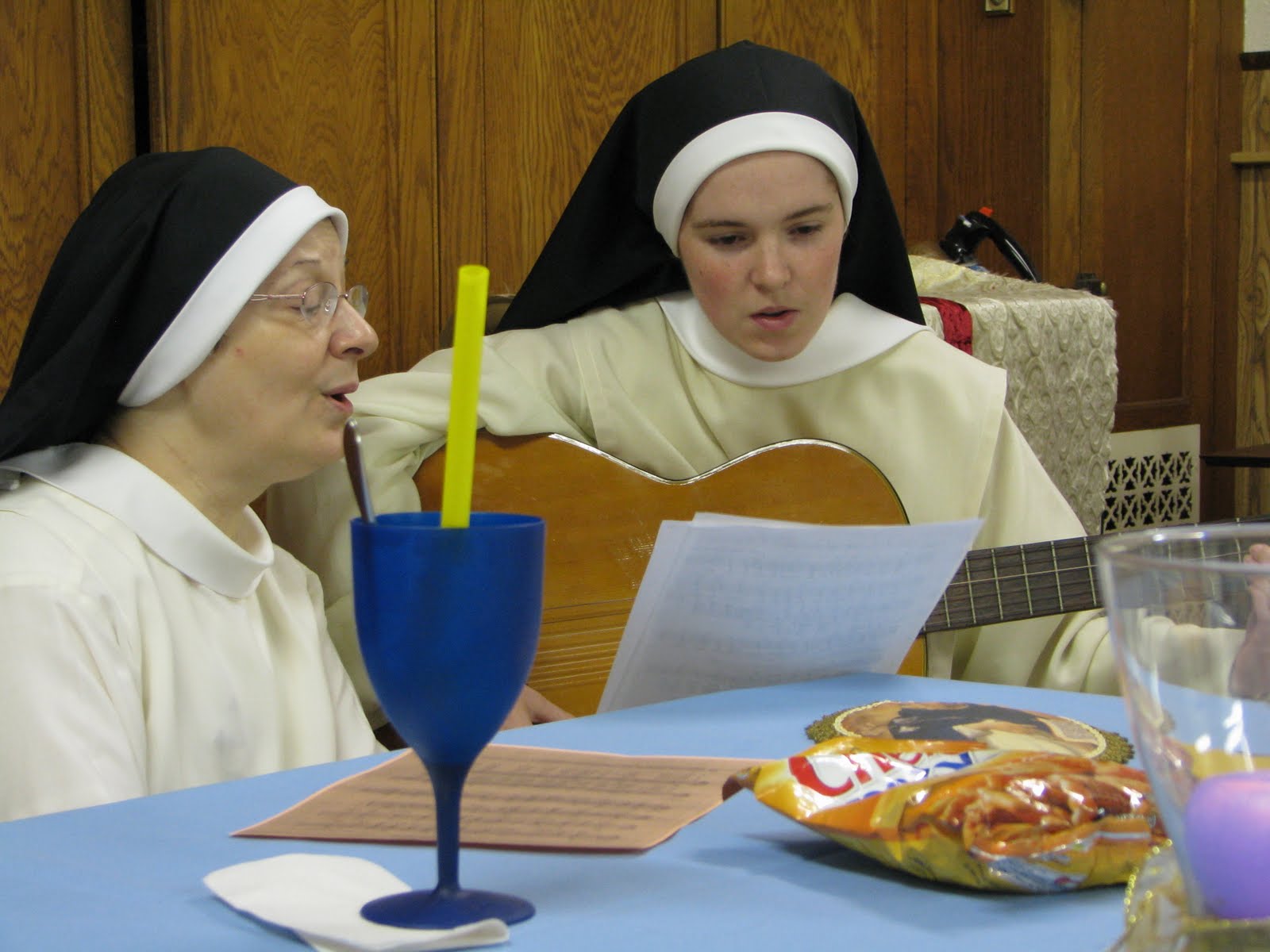 The novices had a party for Sr. Denise Marie one night at recreation....just because! Prioress need a little extra appreciation! Check out those glasses! A gift from a good friend! (We aren't sayin' what was inside of them!)
