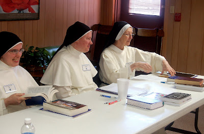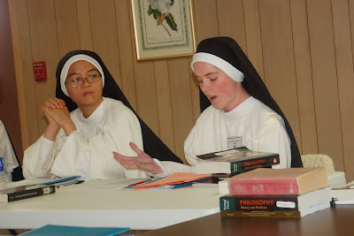 Sr. Maria Teresa presents her Philosophy paper. We all ask, "What is Sr. Joseph Maria thinking????" Or maybe it's just that she needs another cup of coffee!