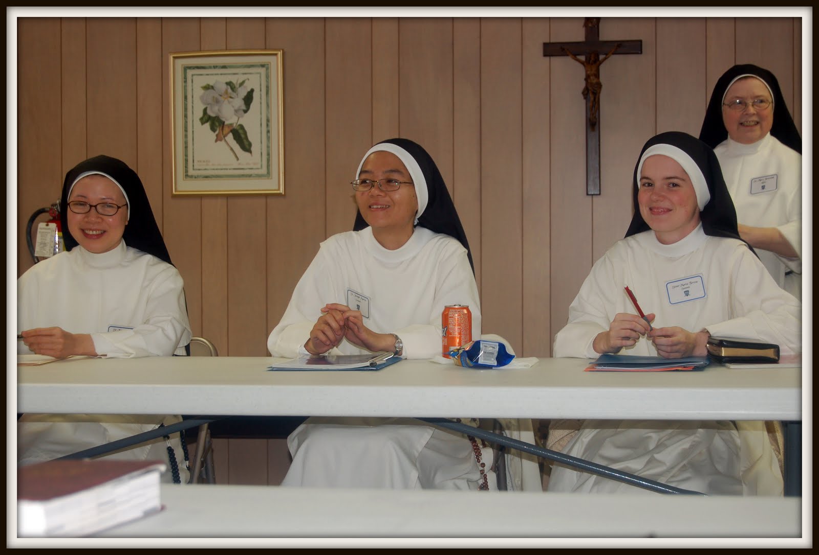 Seated to the left of Sr. Joseph Maria is her name-double, Sr. Mary Guise which is Vietnamese for "Joseph". And of course, behind Sr. Maria Teresa is Sr. Mary Jeremiah, coordinator of the MTS.