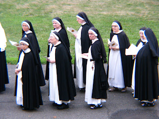 Wednesday evening, Fr. David Meconi, SJ who teaches at St. Louis University began the first of three lectures on the Trinity from Patristic sources such as St. Augustine, Hilary, and St. Ireneaus. Although our spiritualities are very different, we got along great. We were delighted to be Father's first visit to a cloister and hope he returns!