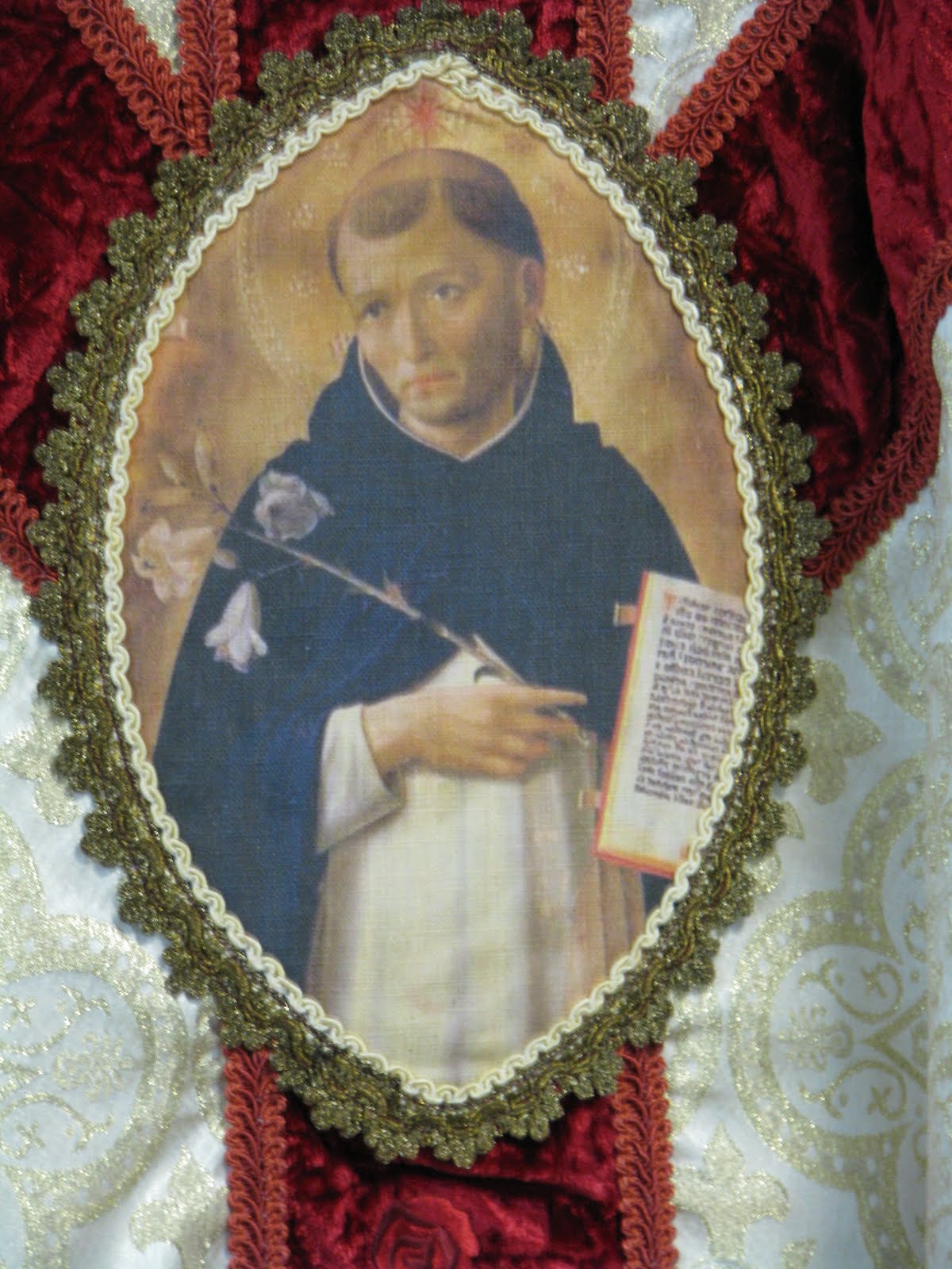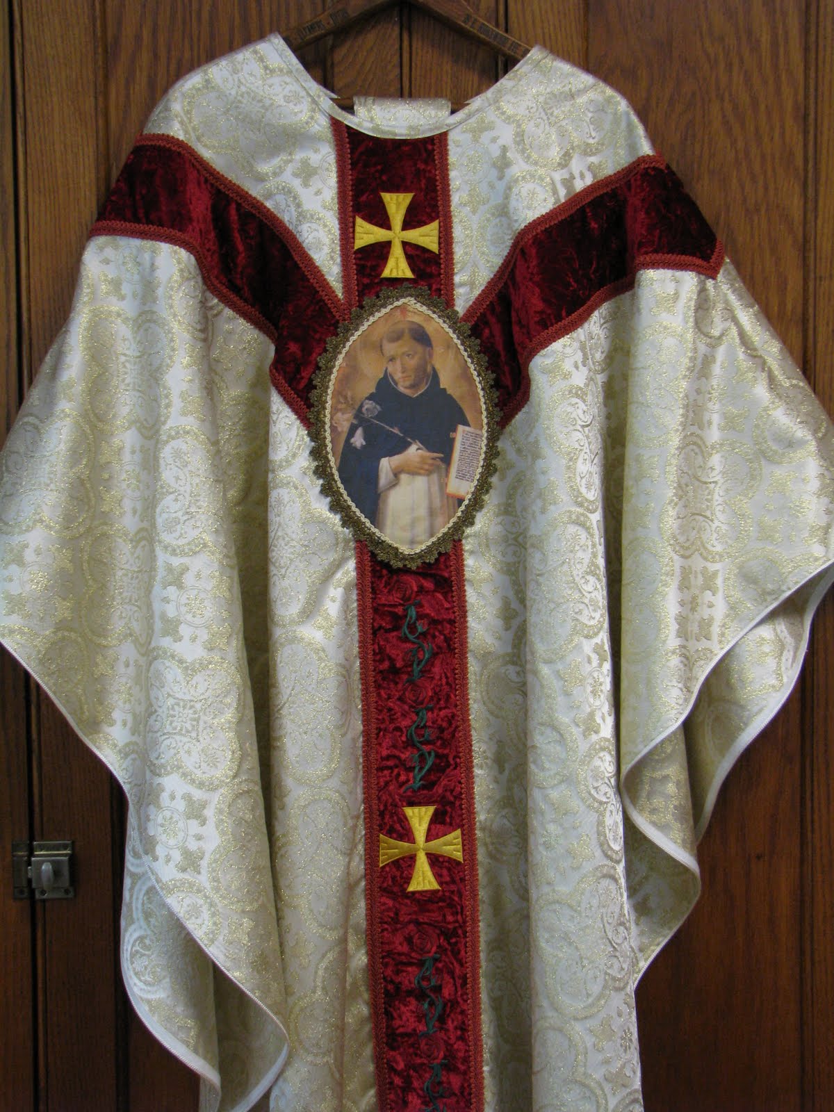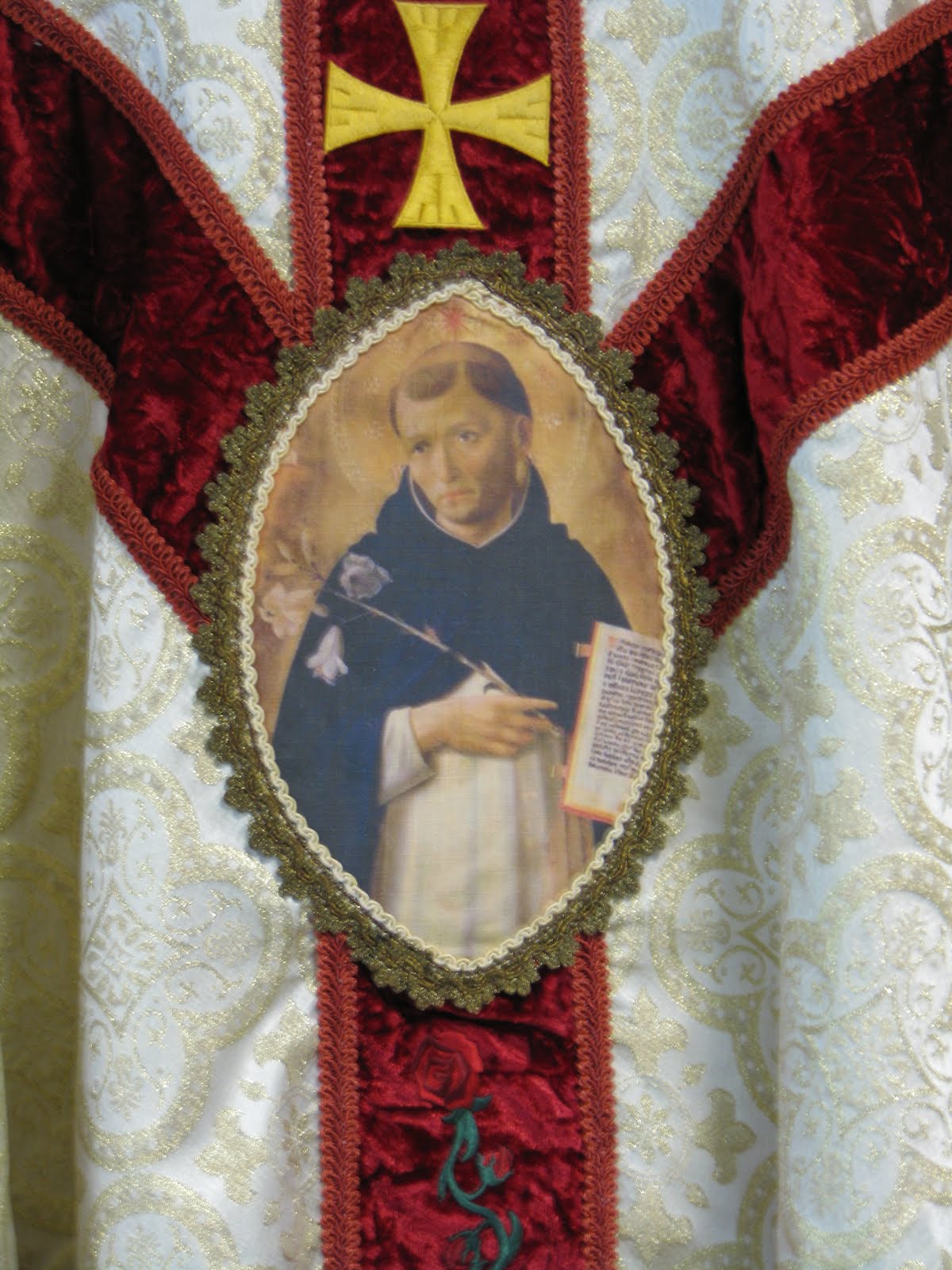 We're happy to have such a beautiful vestment in honor of our Holy Father, St. Dominic!