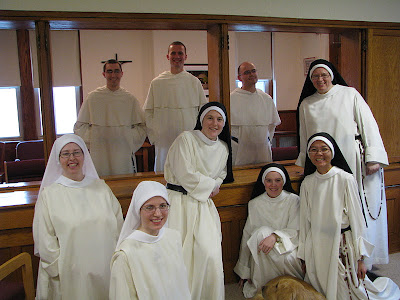Yesterday during dinner clean up Sr. Denise Marie announced that 3 of our brothers were in the parlor for a quick visit on their way to New York. We had a delightful time with (L-R) Bro. Athanasius, Bro. Gregory and Bro. Innocent. Much to the surprise of a certain sister (not pictured!) she didn't remember Br. Anthanasius when he came with his classmate, Bro. John, to ask our prayers right before his entrance into the novitiate! Brother Anthansius, the habit transformed you!