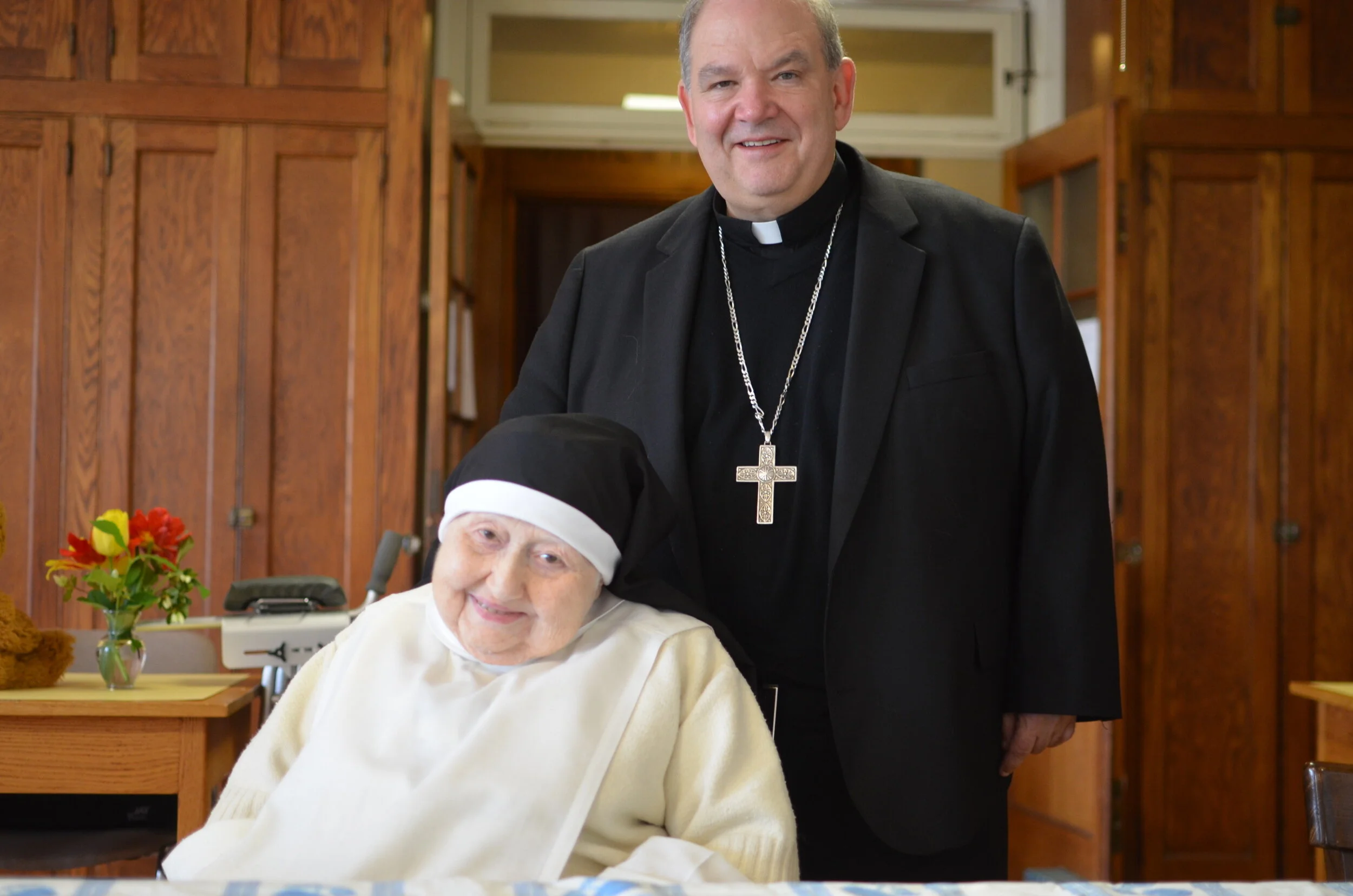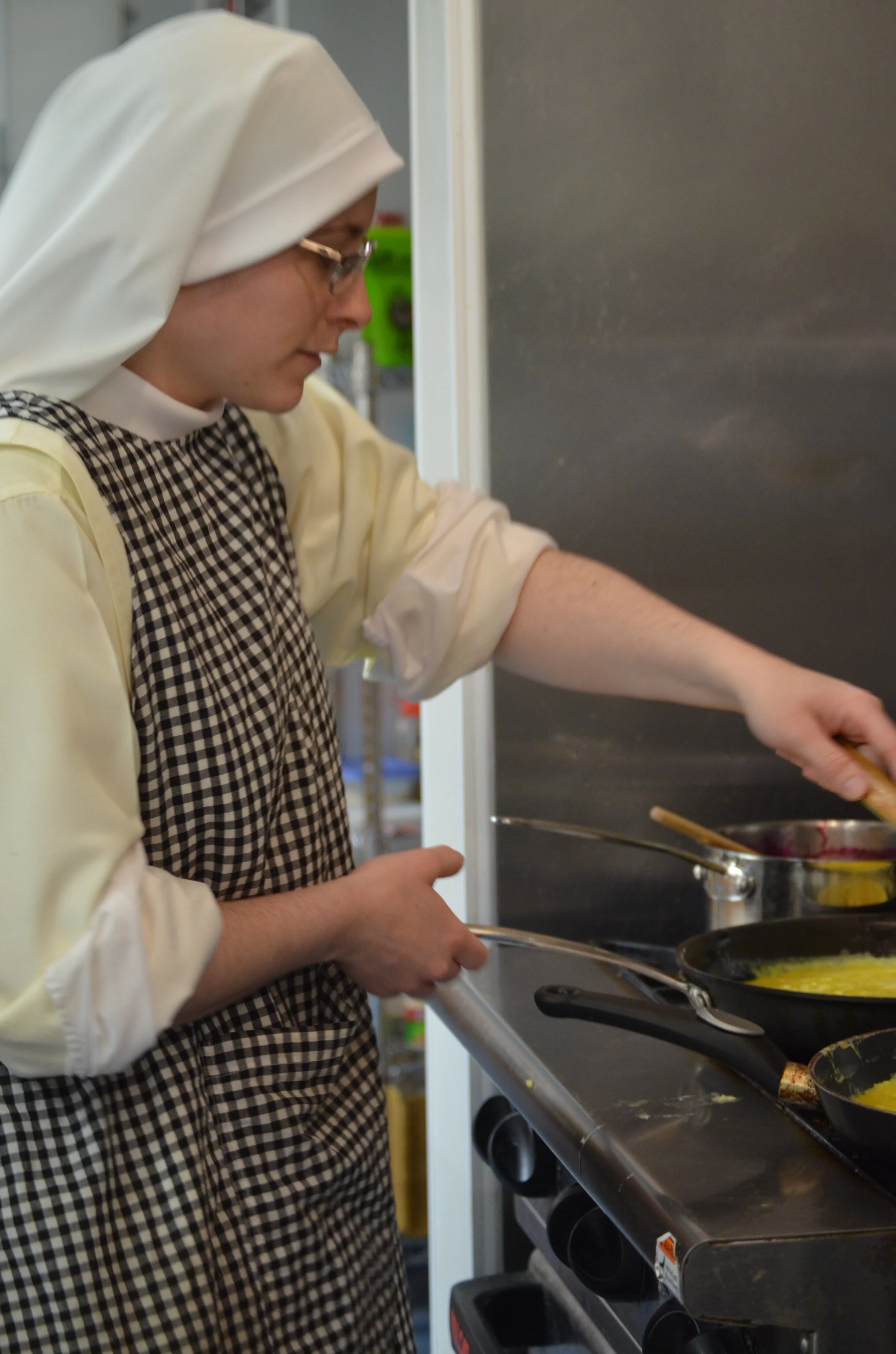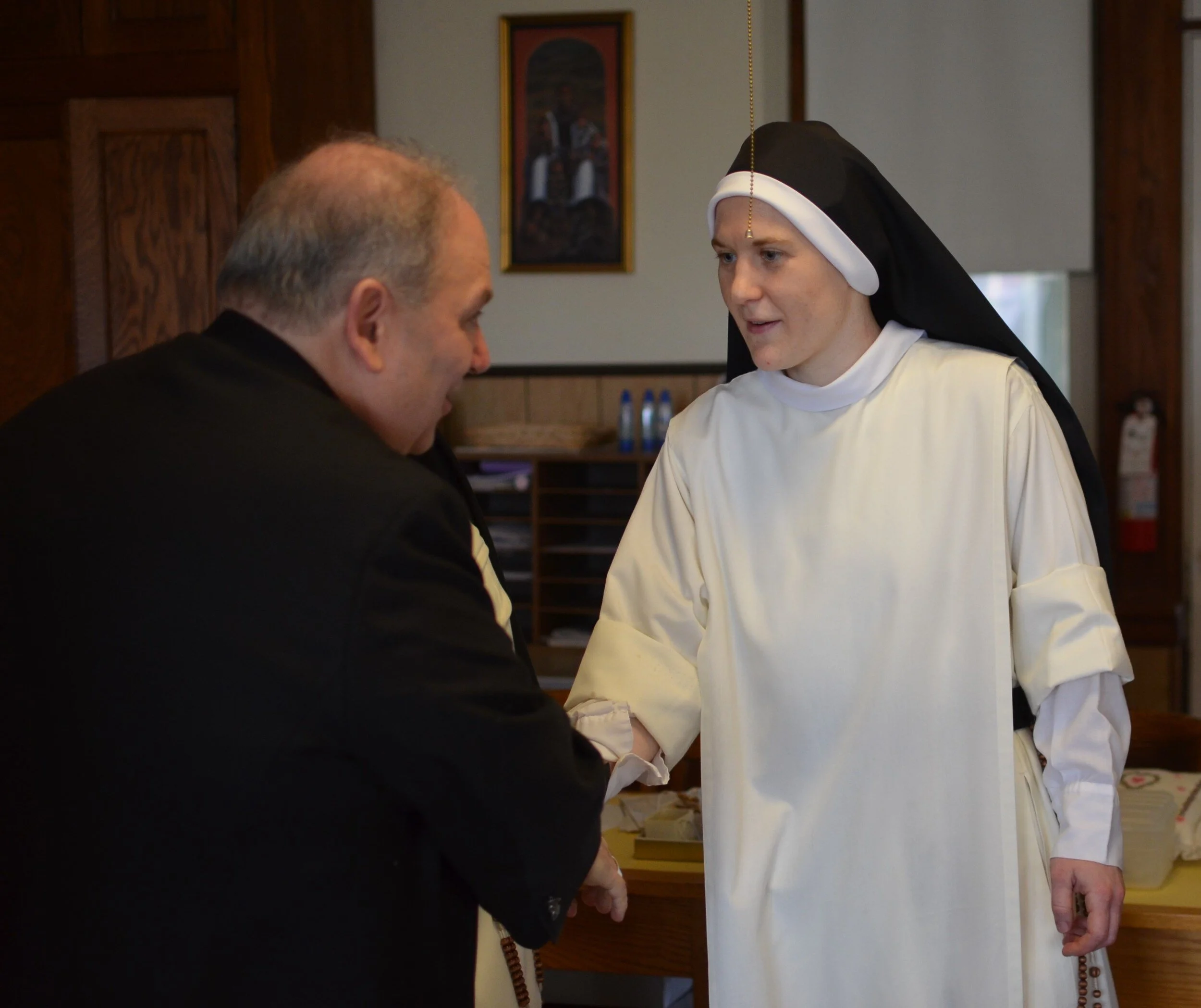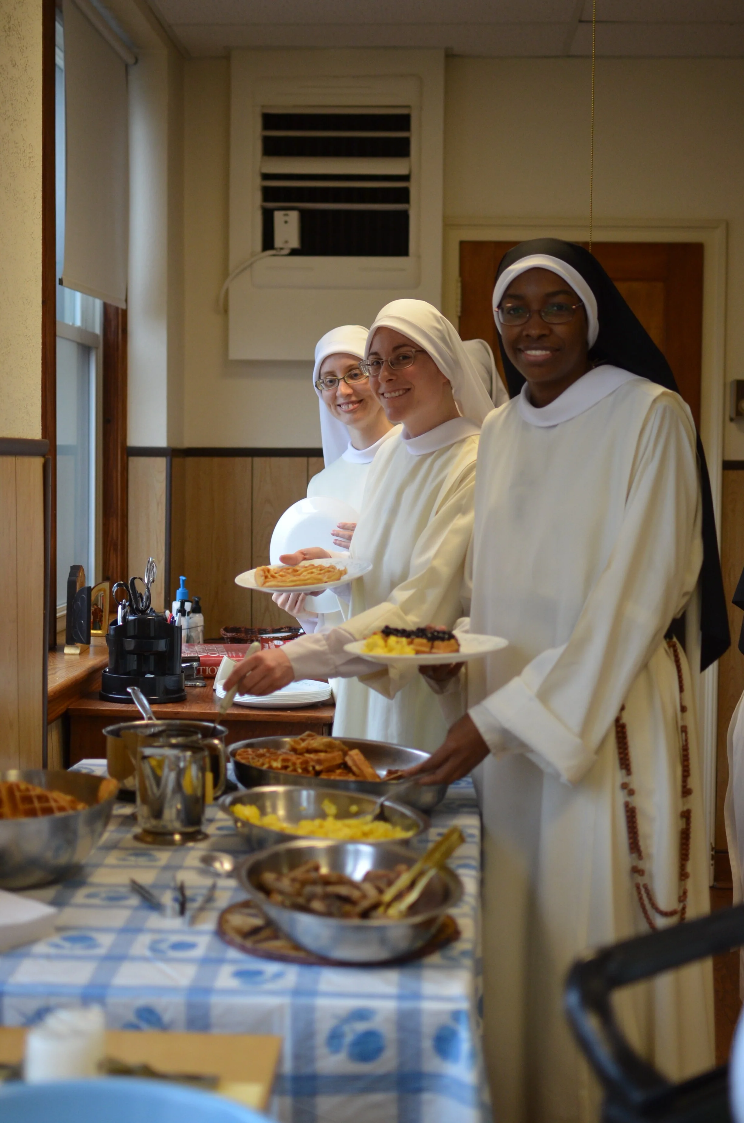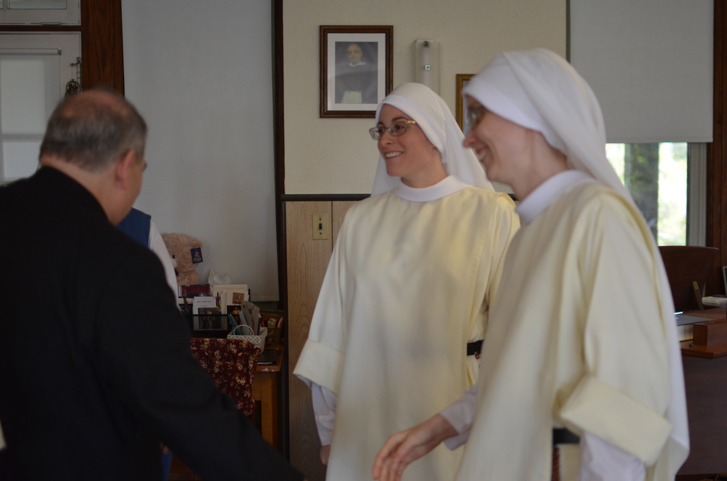 Actually, though it may have seemed coincidental, it was all arranged by Divine Providence. Archbishop Hebda, who will soon be installed as Archbishop of St. Paul-Minneapolis, came and said our morning Mass. Afterwards we invited him and our chaplain Fr. Gregory for a special breakfast in our community room.