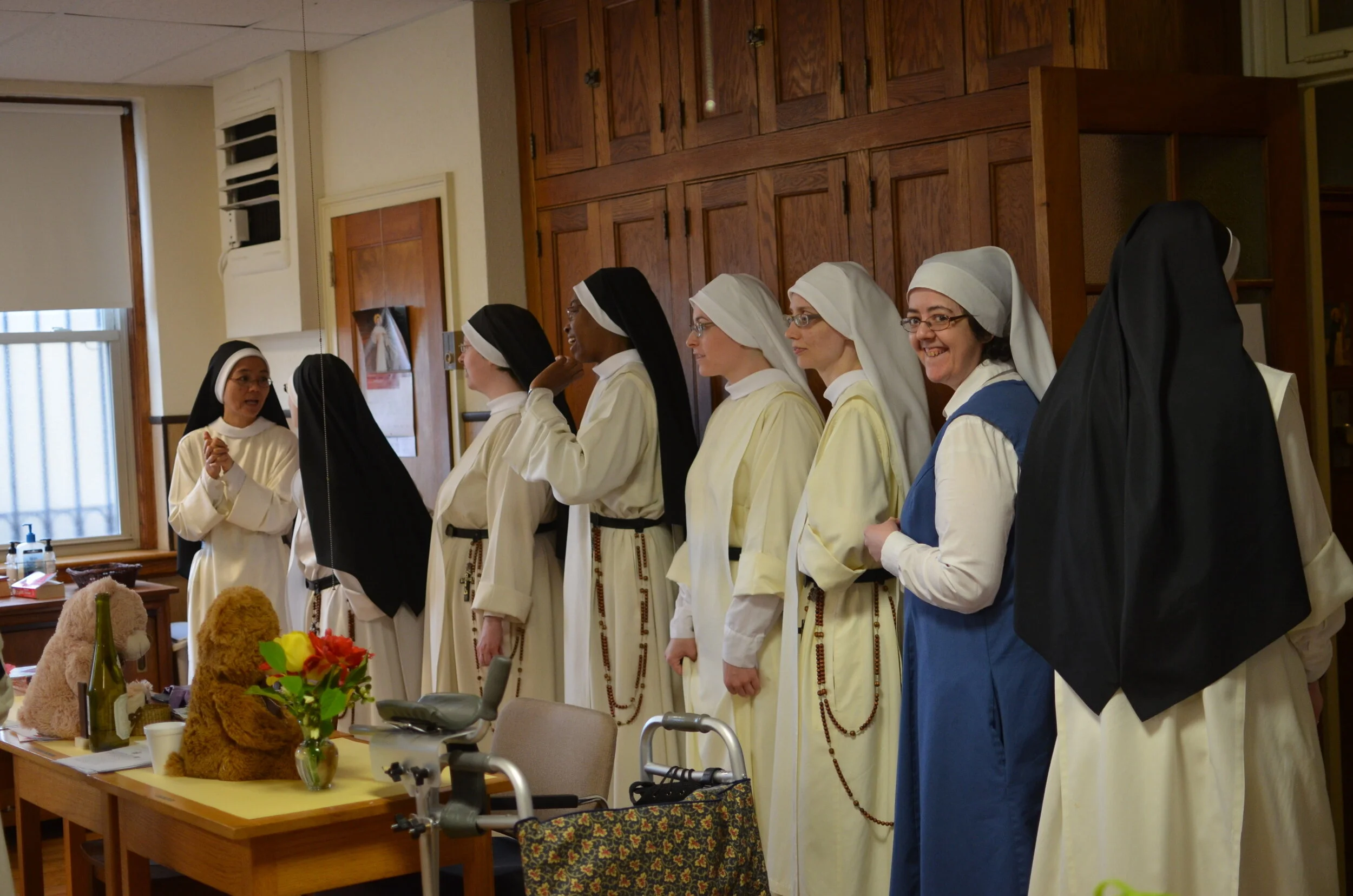 Yesterday, April 30th, was a big day for our community. Sr. Mary Daniel celebrated 70 years since she first stepped foot into the cloister and began her monastic adventure--a record for our monastery! When asked a few days before the 'big day' what she'd like to do for her anniversary, she answered, "Oh I don't need anything." We tried prompting her, maybe there was a special dish she'd like served? "Oh, I really can't think of anything."
