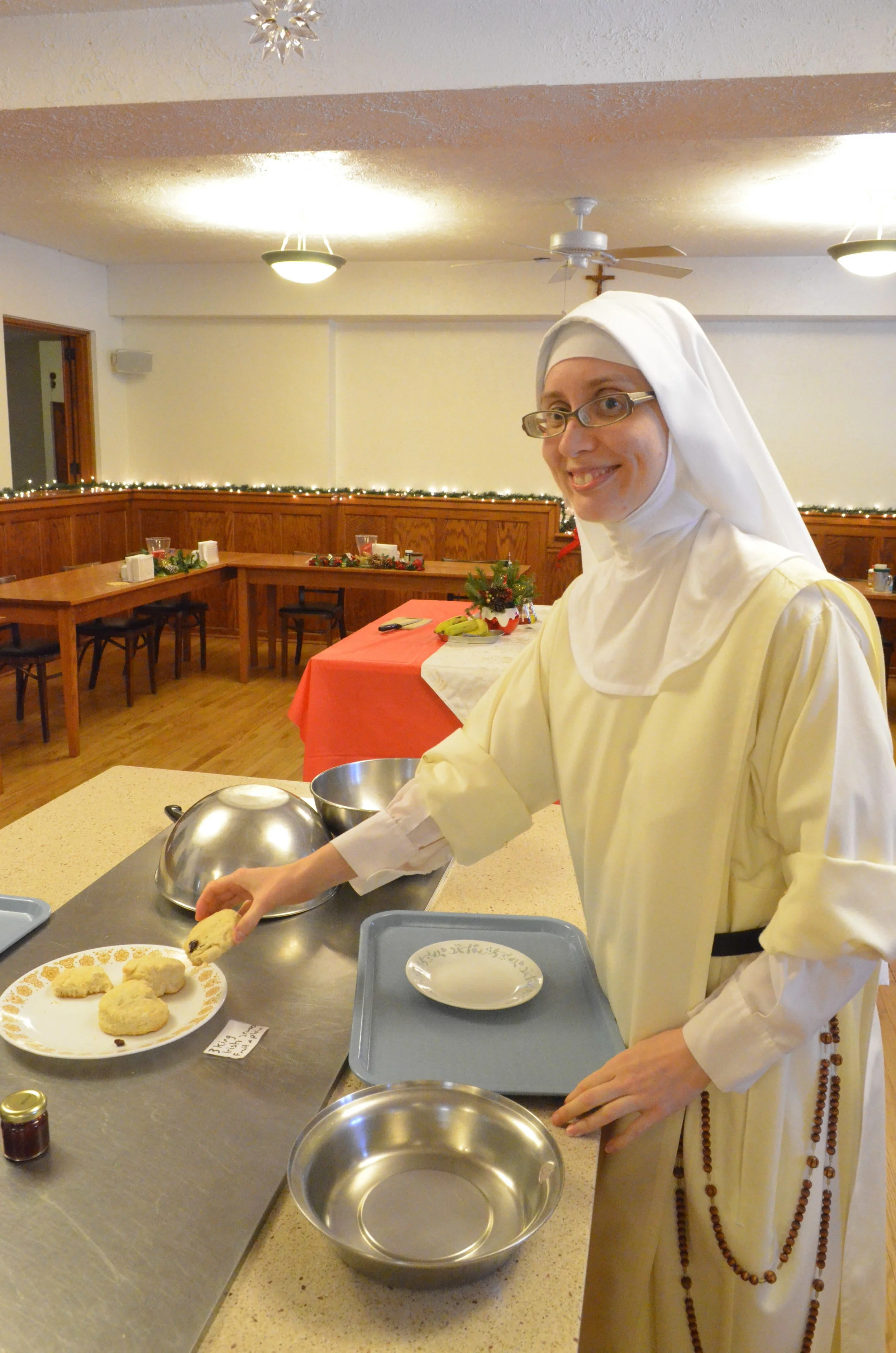 Every year at Epiphany the novitiate hosts a party at evening recreation. It is the one day of the year that the Professed sisters get to go up to the novitiate quarters. It is always fun to see how the sisters decided to decorate each year. There are always cookies and ice cream to enjoy as well. Once everyone is settled we start off the evening of carols with "We Three Kings" as we crown our three "kings." How, you may ask, are the kings determined? The sister who bakes Epiphany breakfast hides three almonds in the scones/muffins/etc. This year Sr. Chiara Marie baked us Irish Scones and the lucky "kings" were Sr. Mary Magdalene, Sr. Denise Marie, and Sr. Mary Amata. Not only are the "kings" regaled with the traditional carol and crowned, but a Mass is said for them at the next available opening. Apologies for some of the pictures, the party is by candlelight!