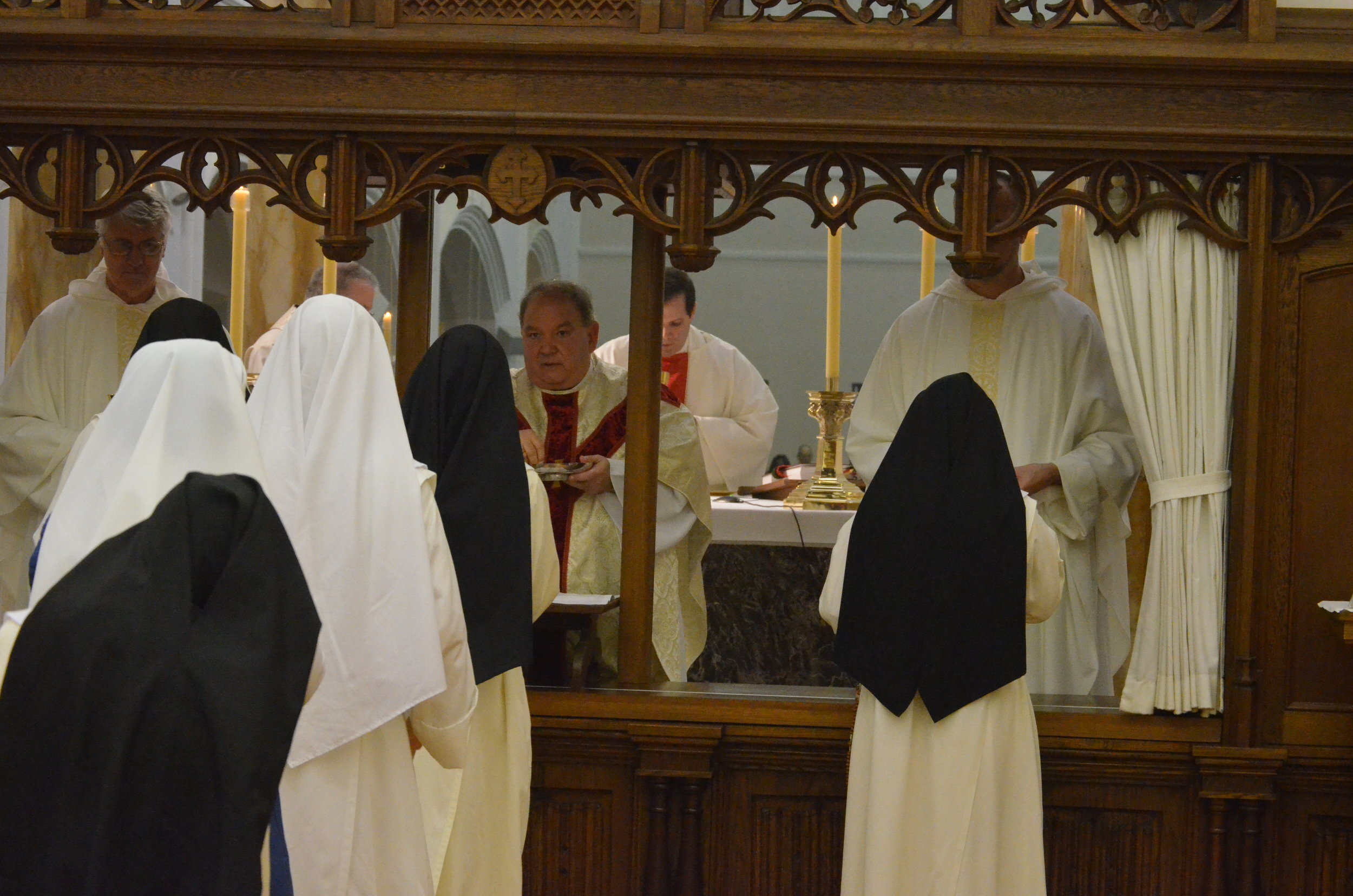 Sr. Mary Catharine invited Archbishop Hebda who, for a brief while, was Co-adjutor for our diocese, and we were grateful that he was able to come. The Mass was absolutely beautiful. Sr. Mary Catharine chanted the first reading, Sr. Mary Martin read the second, and our chaplain Fr. Gregory Salomone chanted the Gospel. Fr. Roger Landry gave a wonderful homily interspersed with quotations from different articles that Sister had written over the years about her vocation. Fr. Peter Stravinskas acted as Master of Ceremonies, flawlessly directing the celebrants. We are grateful that Fr. Stravinskas is always happy to perform this role. Con-celebrating were Fr. Jack Carmichael, Fr. John Vidmar, OP, Fr. Benedict Croell, OP, Fr. David Adiletta, OP, Fr. Patrick Seo, Fr. Douglas Milewski, and Fr. Tom Barry. Richard Sofie and Luis served the Mass.
