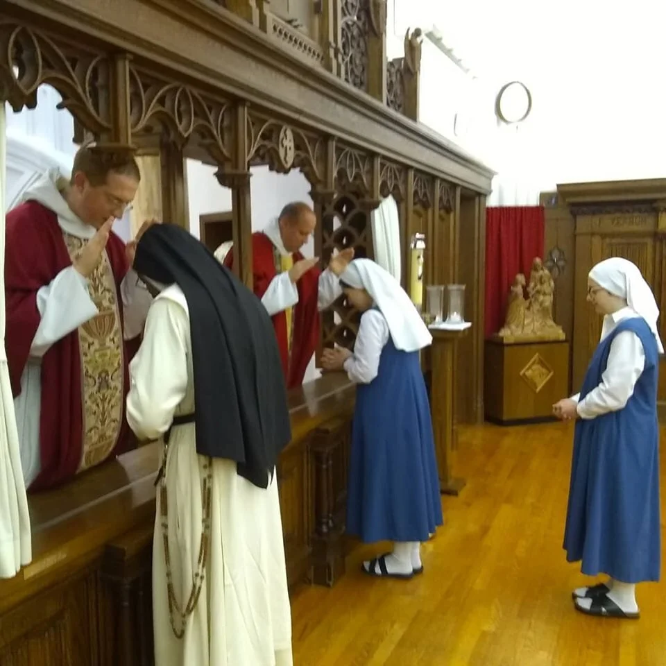 Towards the end of May the novices for St. Joseph Province stopped by with their Novice Master, Fr. Michael Dosch, for a visit on their Provincial Tour. We enjoyed hearing about their journey to the Order and their novitiate year. At the end of our visit the brothers sang for us and Father gave us a blessing.