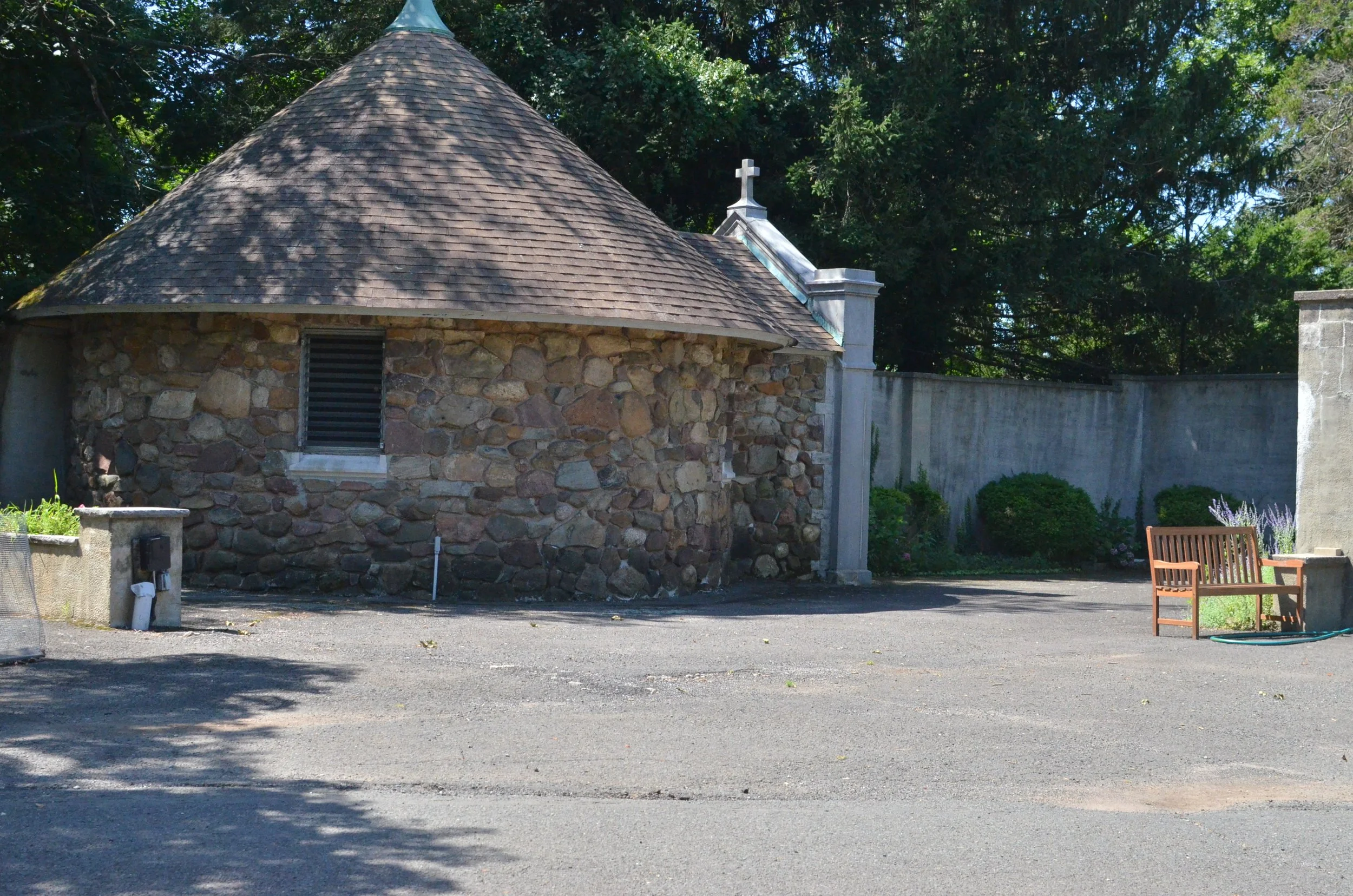 Shortly after the foundation of our monastery in Summit, a group of women surprised the Sisters by coming here on pilgrimage to Our Lady of the Rosary. These women predicted that more would come, and friends started suggesting an official, public pilgrimage. As this was a way of promoting devotion to Our Lady of the Rosary, the sisters were in favor of the idea, and permission was sought and obtained from the bishop. There was at that time no place to receive pilgrims, since the permanent monastery had not yet been built and the Sisters were living in a old mansion, with the foyer converted into a very small public chapel. The Sisters therefore also obtained permission to build, at one end of a nice expanse of lawn, a small, circular, field-stone chapel as the pilgrimage shrine. This chapel, known as the grotto, was completed just in time for the first public pilgrimage to Our Lady of the Rosary, in the United States, held here on May 22, 1921. The grotto was dedicated during the pilgrimage.